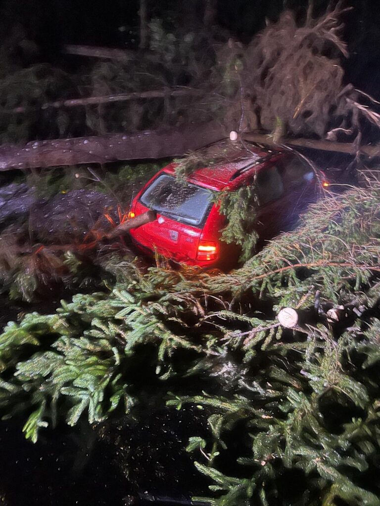 Besonders betroffen war die Seebergbundesstraße (B82): Mehrere umgestürzte Bäume blockierten die Fahrbahn und begruben dabei zwei PKW unter sich. Die Insassen hatten großes Glück im Unglück und kamen mit dem Schrecken davon.