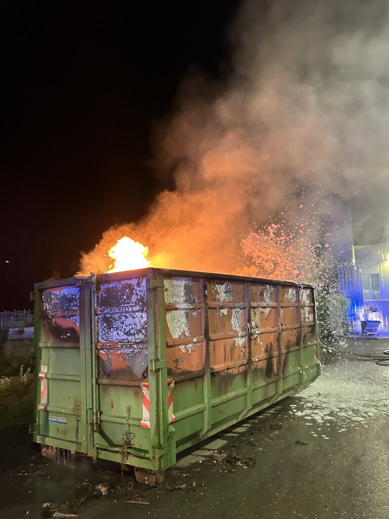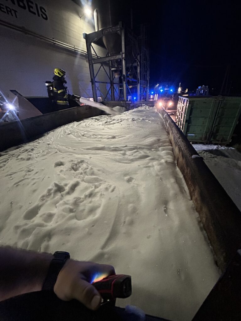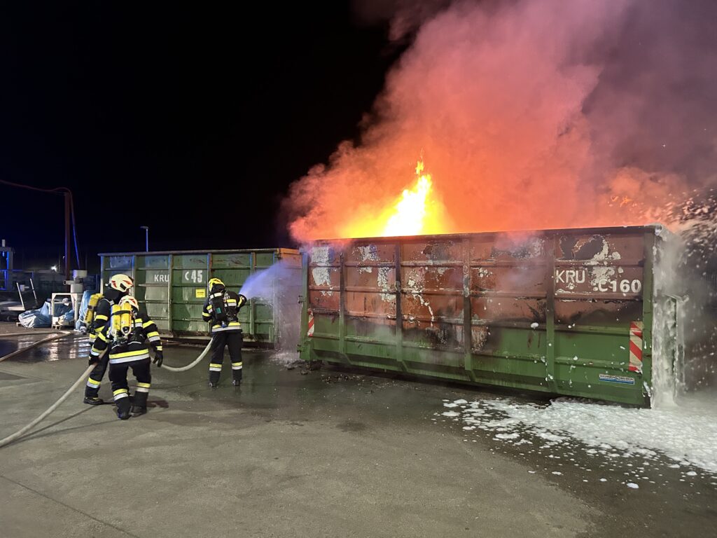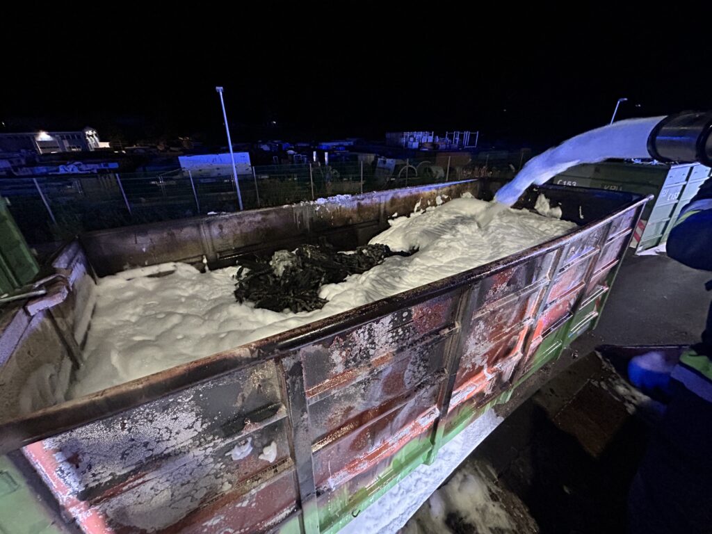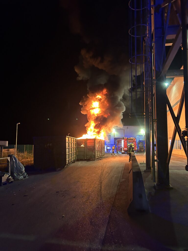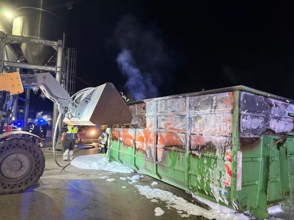 Beim Eintreffen stand ein mit Abfällen eines Extruders befüllter Container bereits in Vollbrand. Umgehend wurde ein Löschangriff gestartet. Zunächst konnte der Brand mittels Wasser eingedämmt werden, anschließend wurde der Container mit Schaum geflutet und kontrolliert.