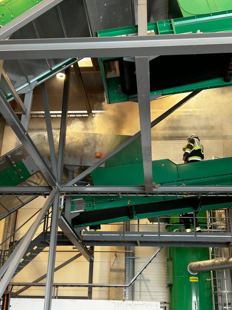 Beim Eintreffen konnte zunächst leichter Rauch im Bereich eines Förderbandes festgestellt werden. Rasch stellte sich jedoch heraus, dass es sich nicht um einen Täuschungsalarm handelte – der Rauch nahm deutlich zu, und Flammen wurden sichtbar.